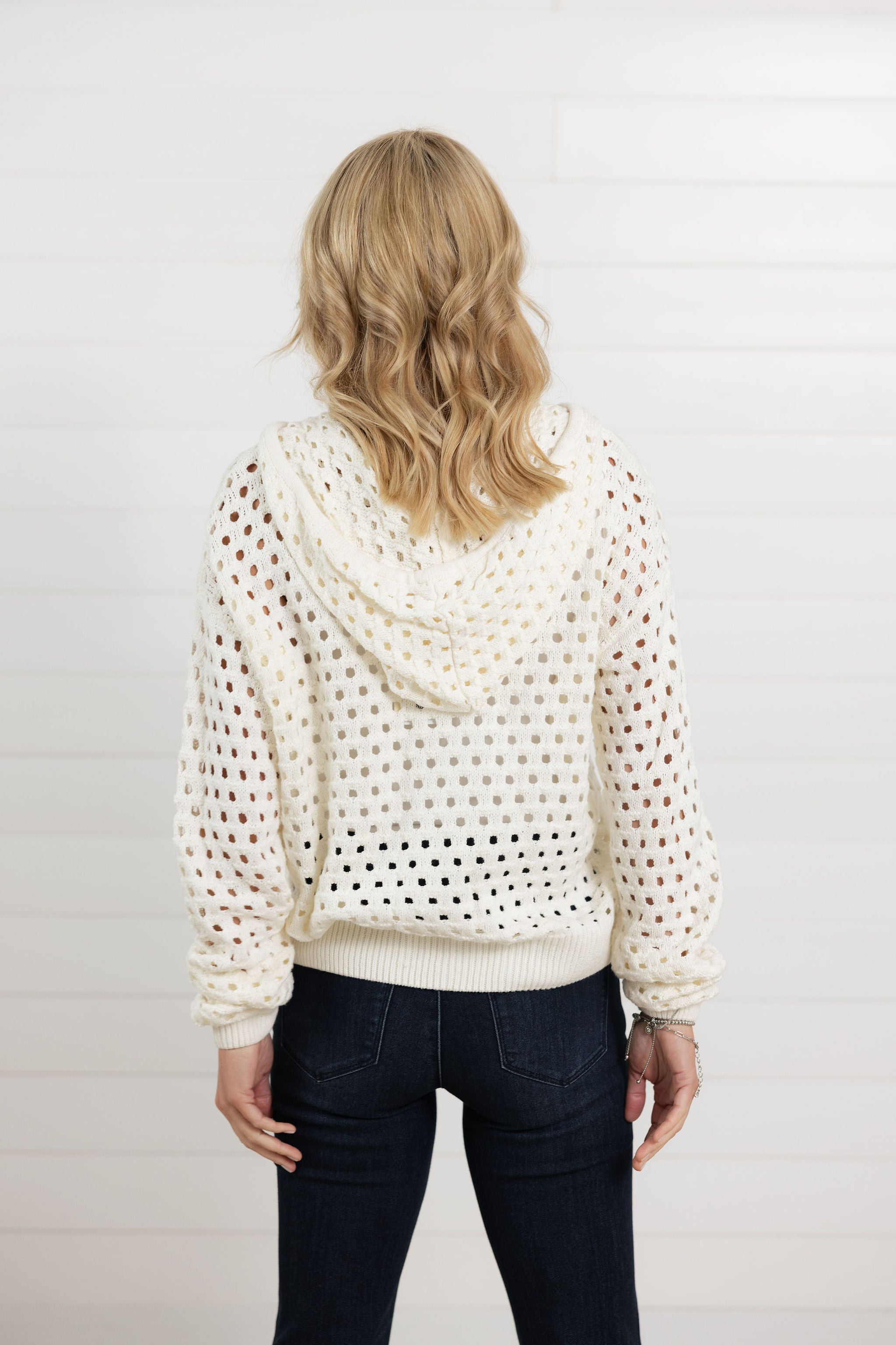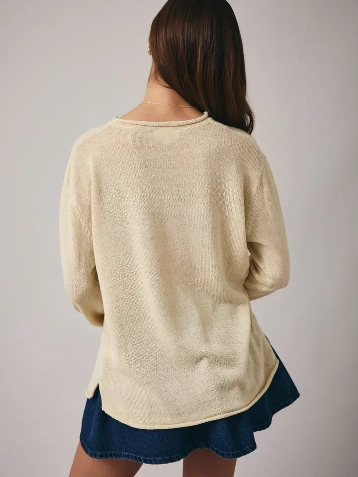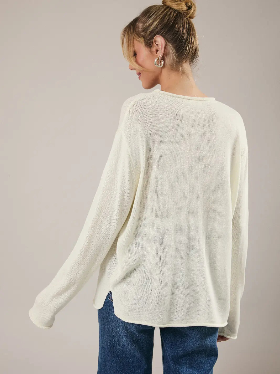 *FINAL SALE* Round Neck Sweater Cardigan with Pearl Beaded Edge
