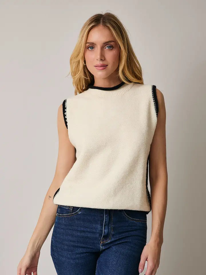 *FINAL SALE* Mock Neck Rolled Hem Sleeveless Sweater Vest