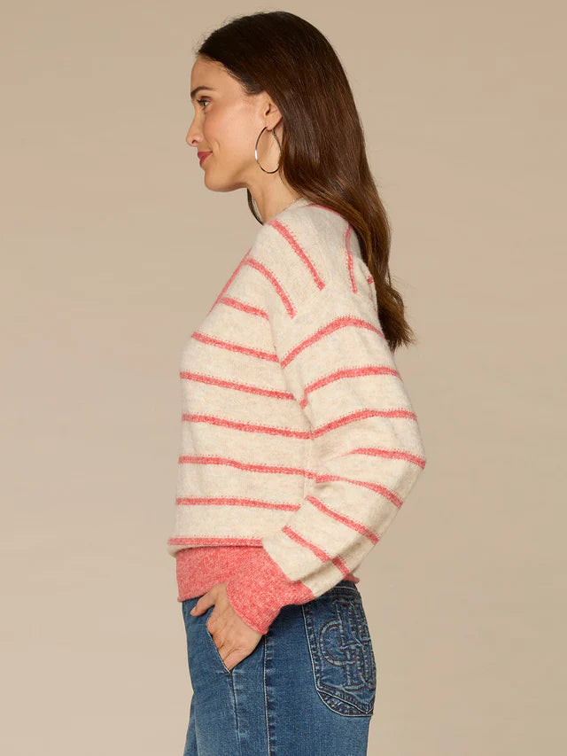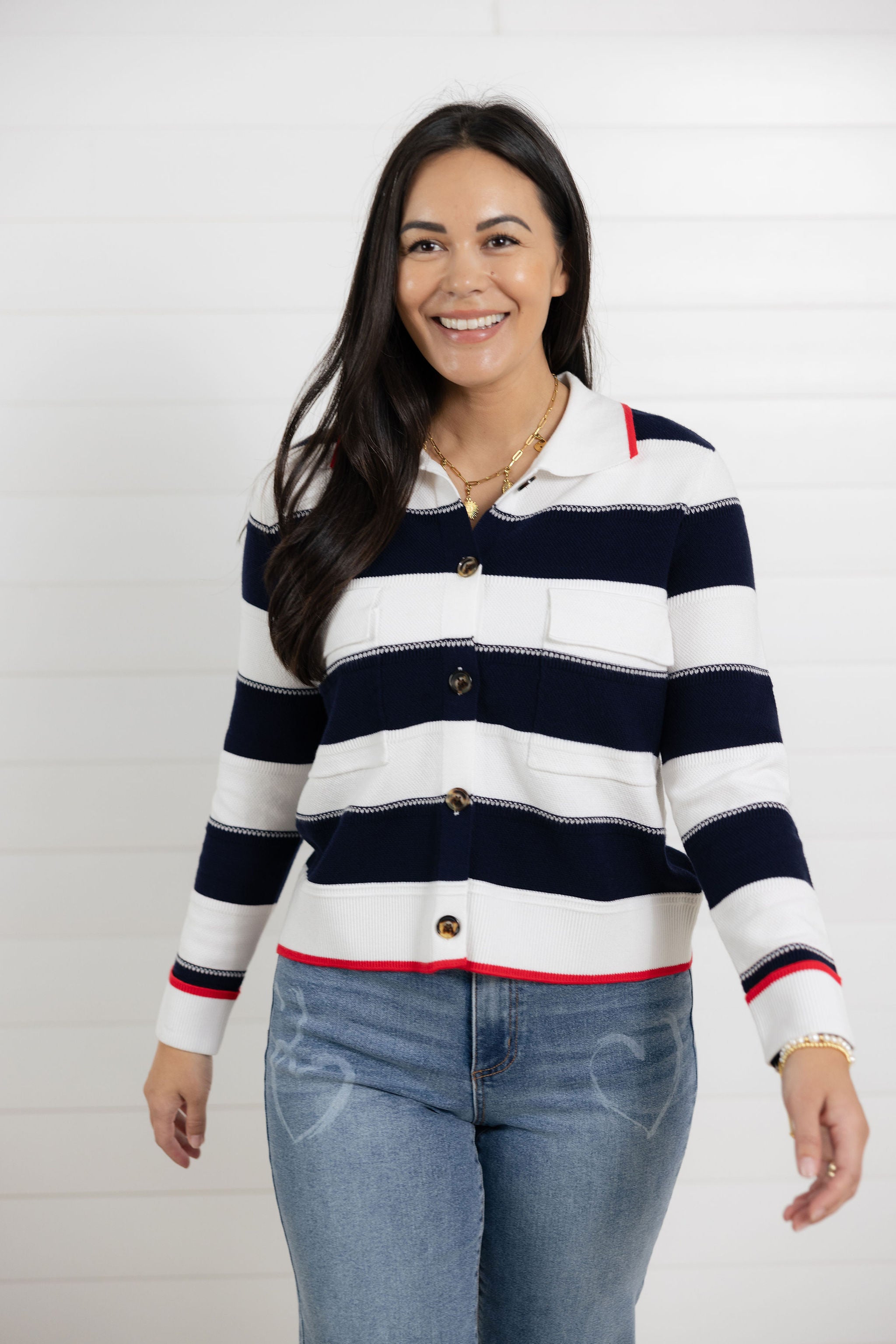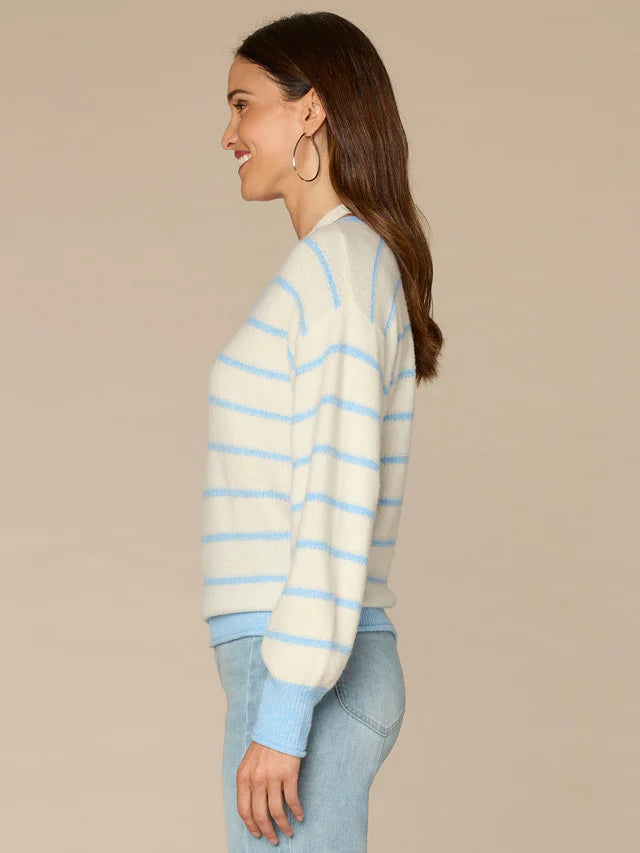 *FINAL SALE* Round Neck Long Sleeve Stripe Cardigan