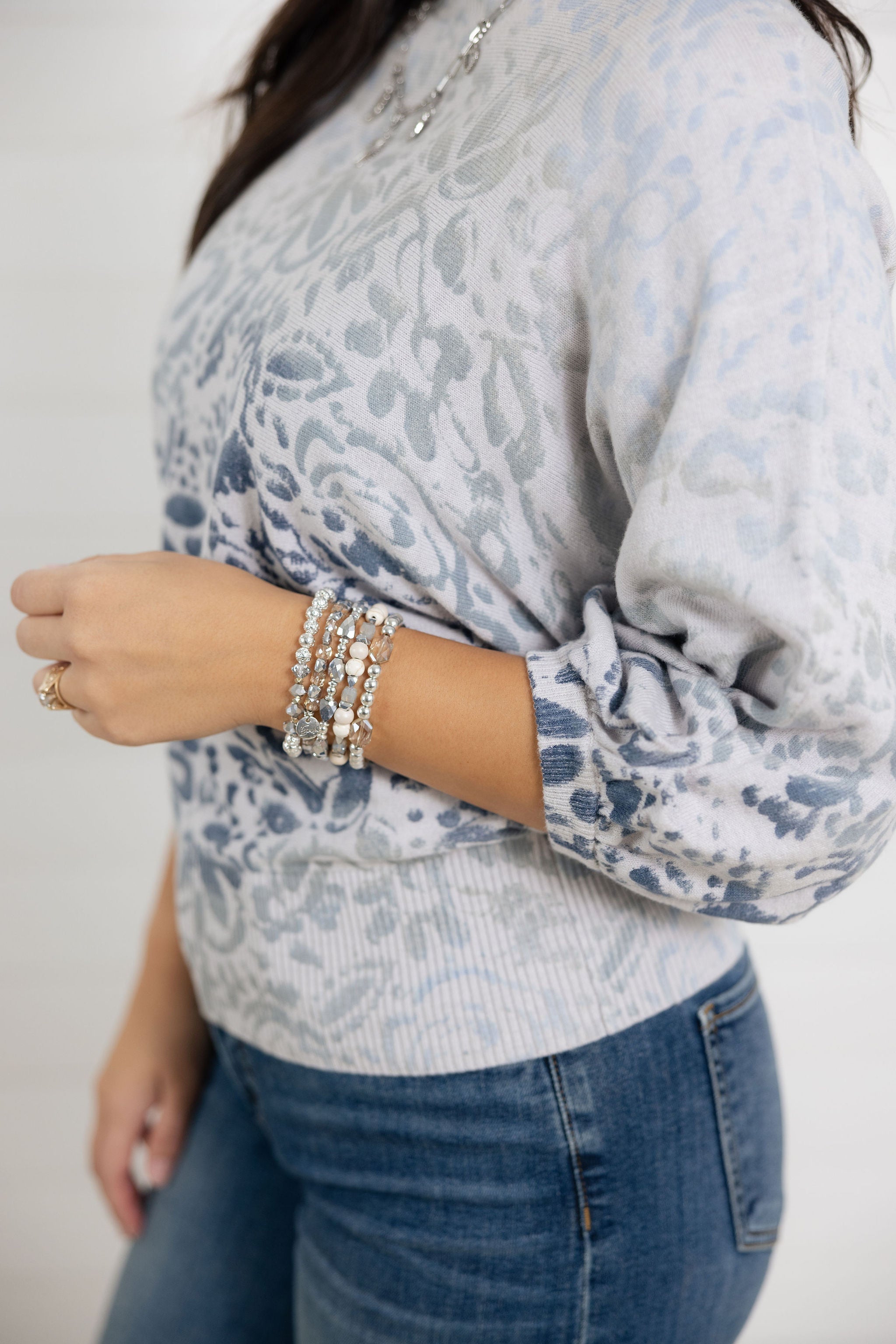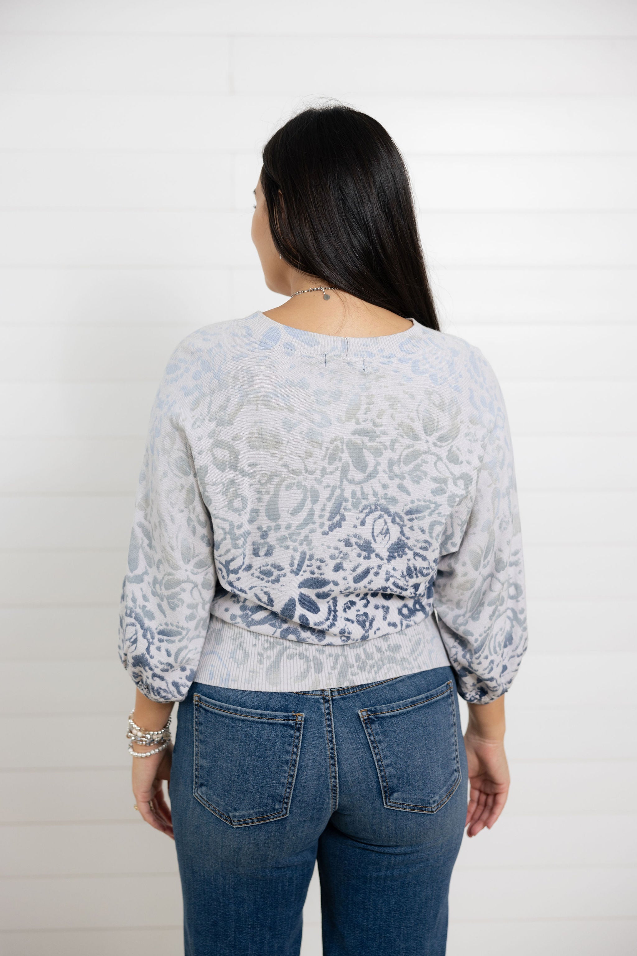 Ombre Patterned 3/4 Dolman Blouson Sleeve Sweater