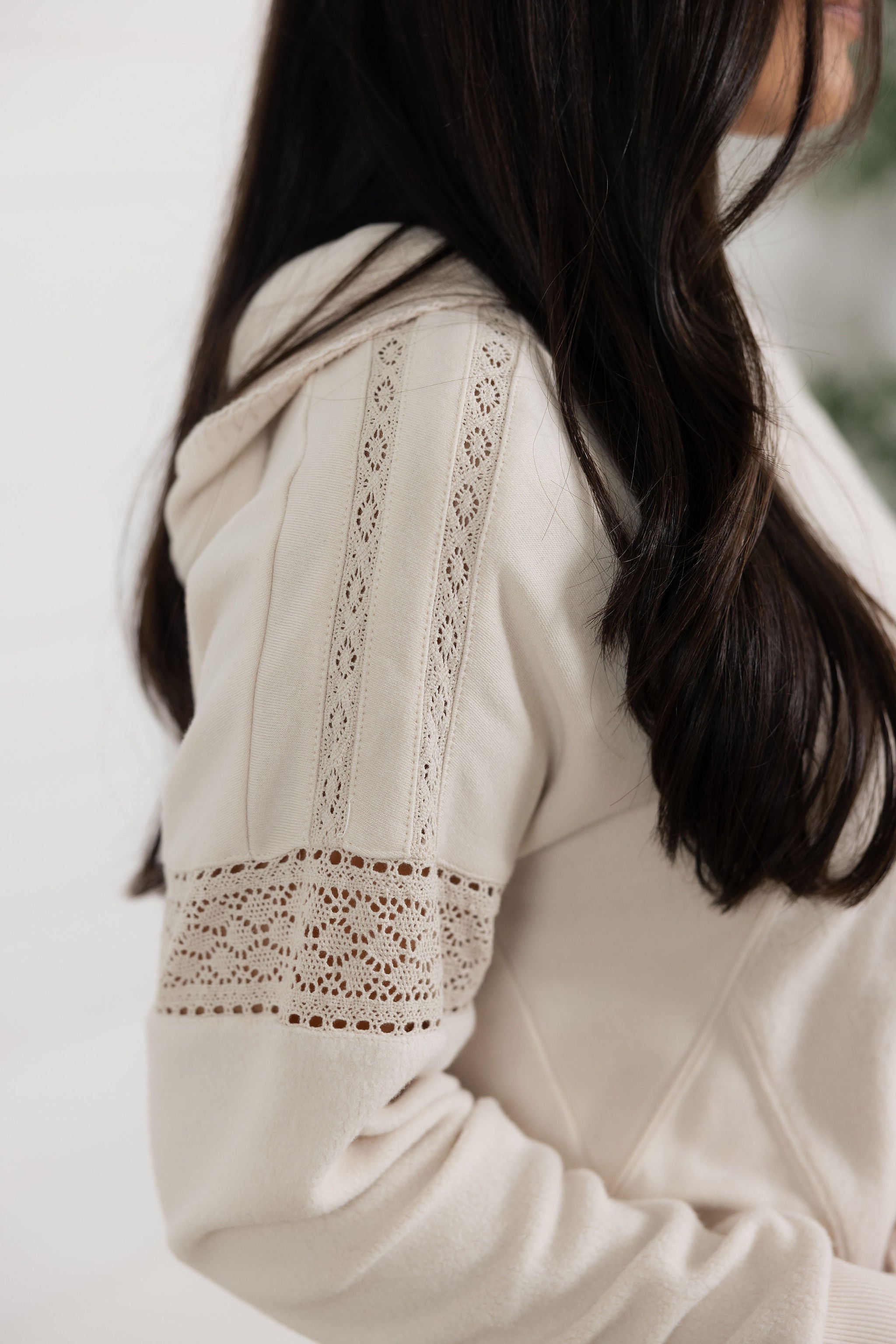 *FINAL SALE* Crew Neck Sweater with Trim Detail and Heart Sleeves