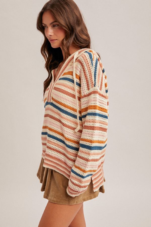 *FINAL SALE* Hooded Oversized Multi Color Stripe Sweater