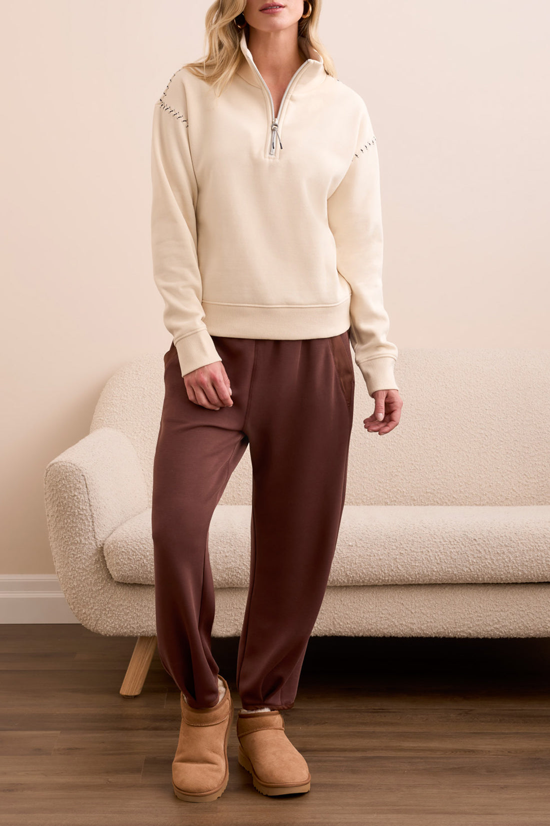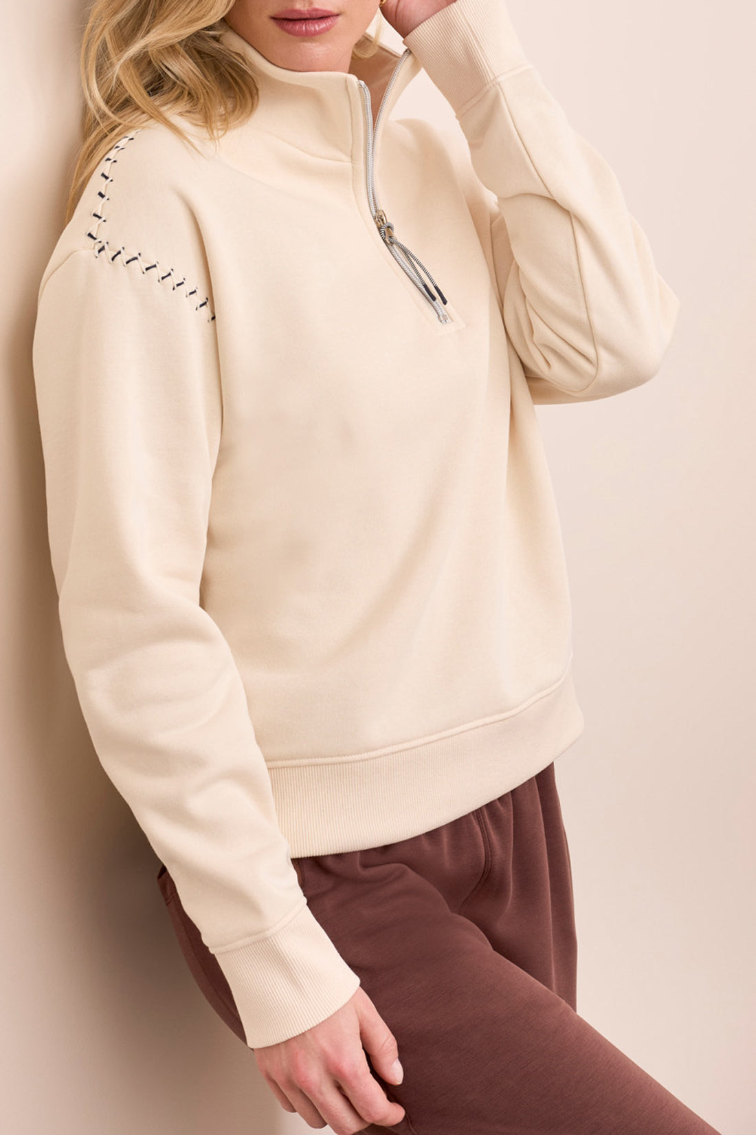 *FINAL SALE* MB Long Sleeve Zip Funnel Neck Top W/ Stitching