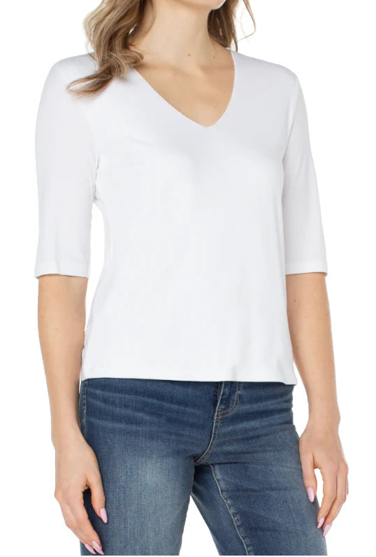 Liverpool Double Layer V-Neck 1/2 Sleeve Rib Knit Top