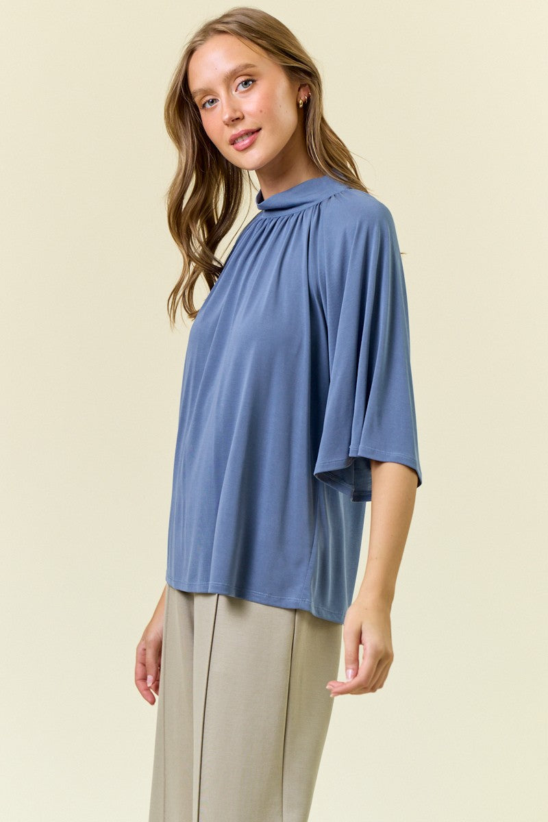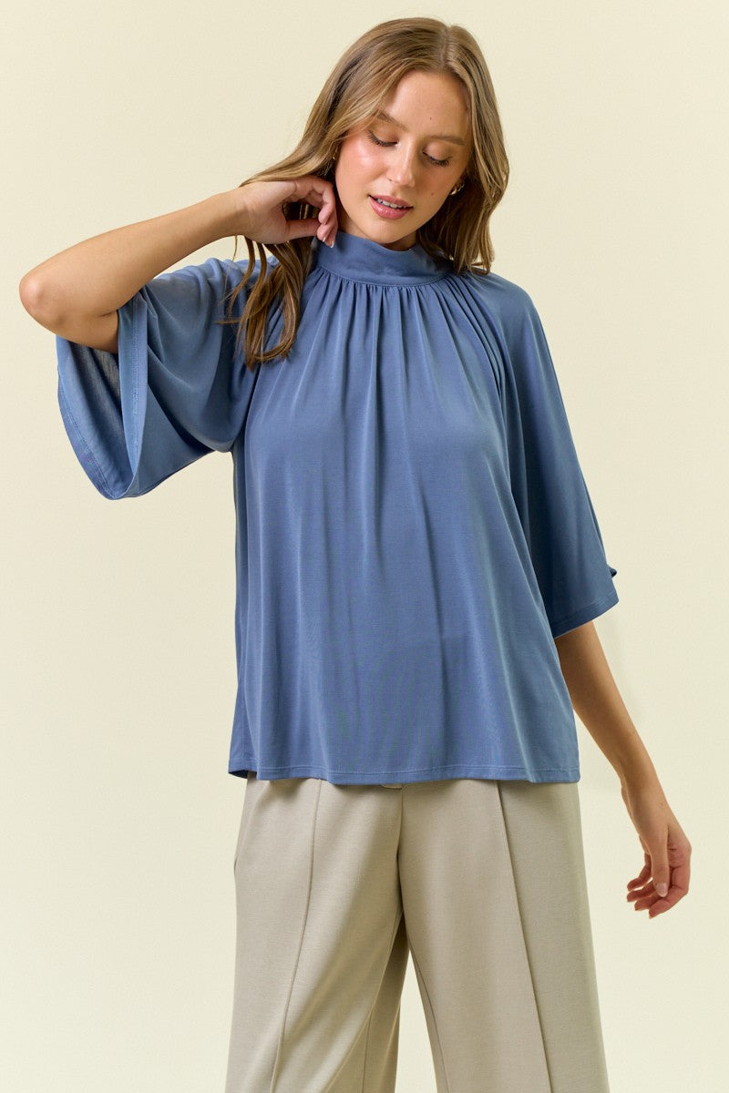 Modal Jersey Mock Neck Fluted Sleeve Top