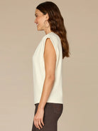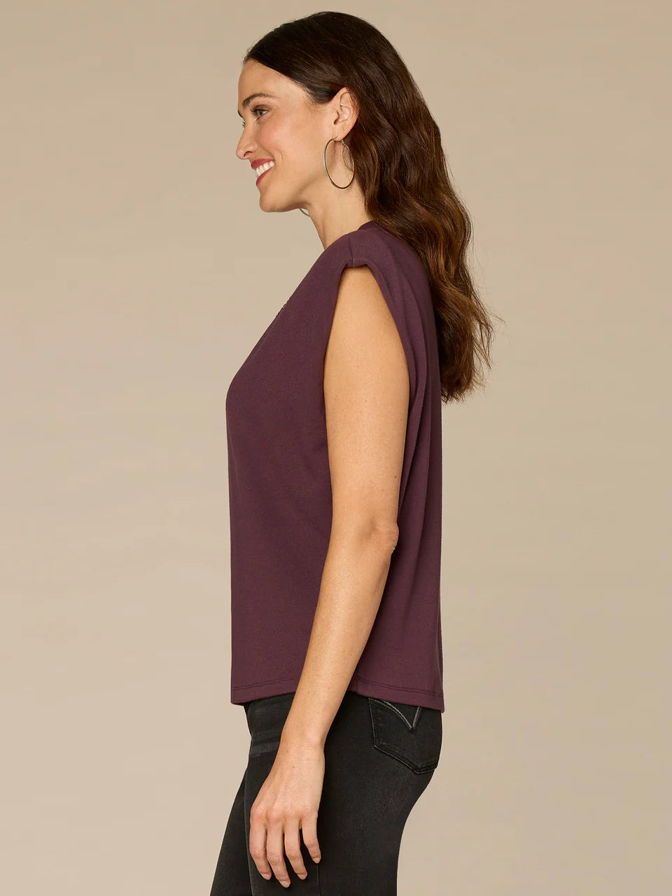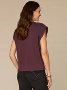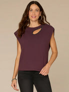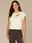Extended Cap Sleeve Crew Neck Knit Top with Rhinestone Cut Out