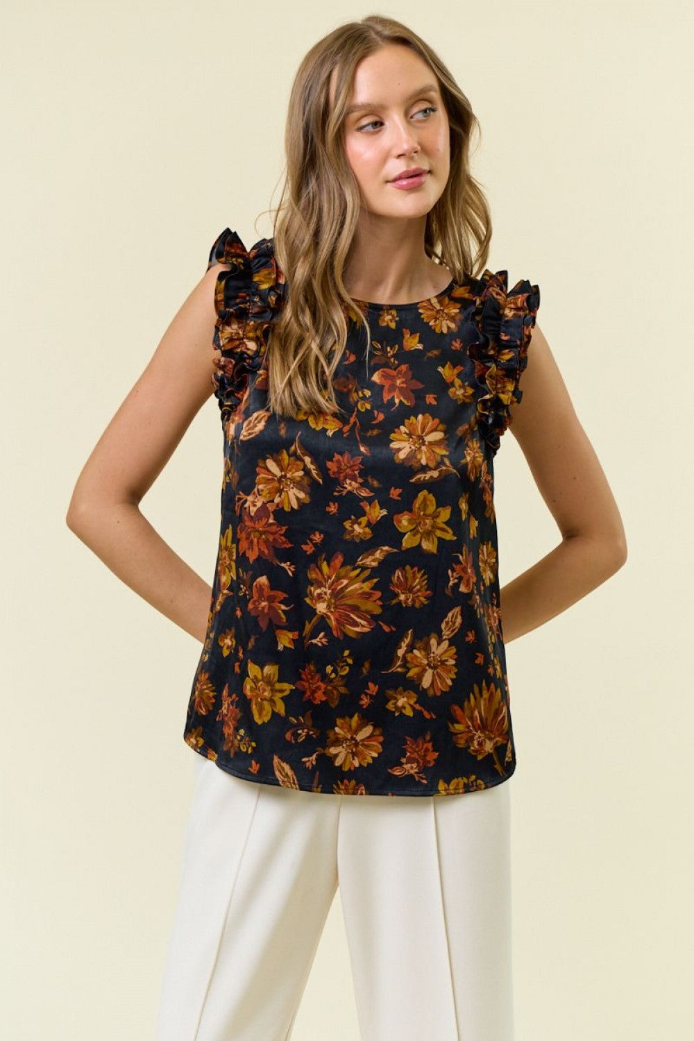 *FINAL SALE* Floral Ruffle Sleeve Round Neck Tank