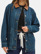 This versatile longline denim jacket elevates the classic silhouette with a chic faux leather collar. The longer cut offers more coverage, while the contrasting textures create a refined yet edgy look. Perfect for layering, this jacket effortlessly adds a stylish finishing touch to any casual or elevated ensemble.