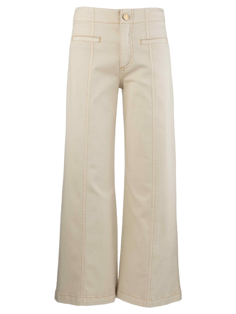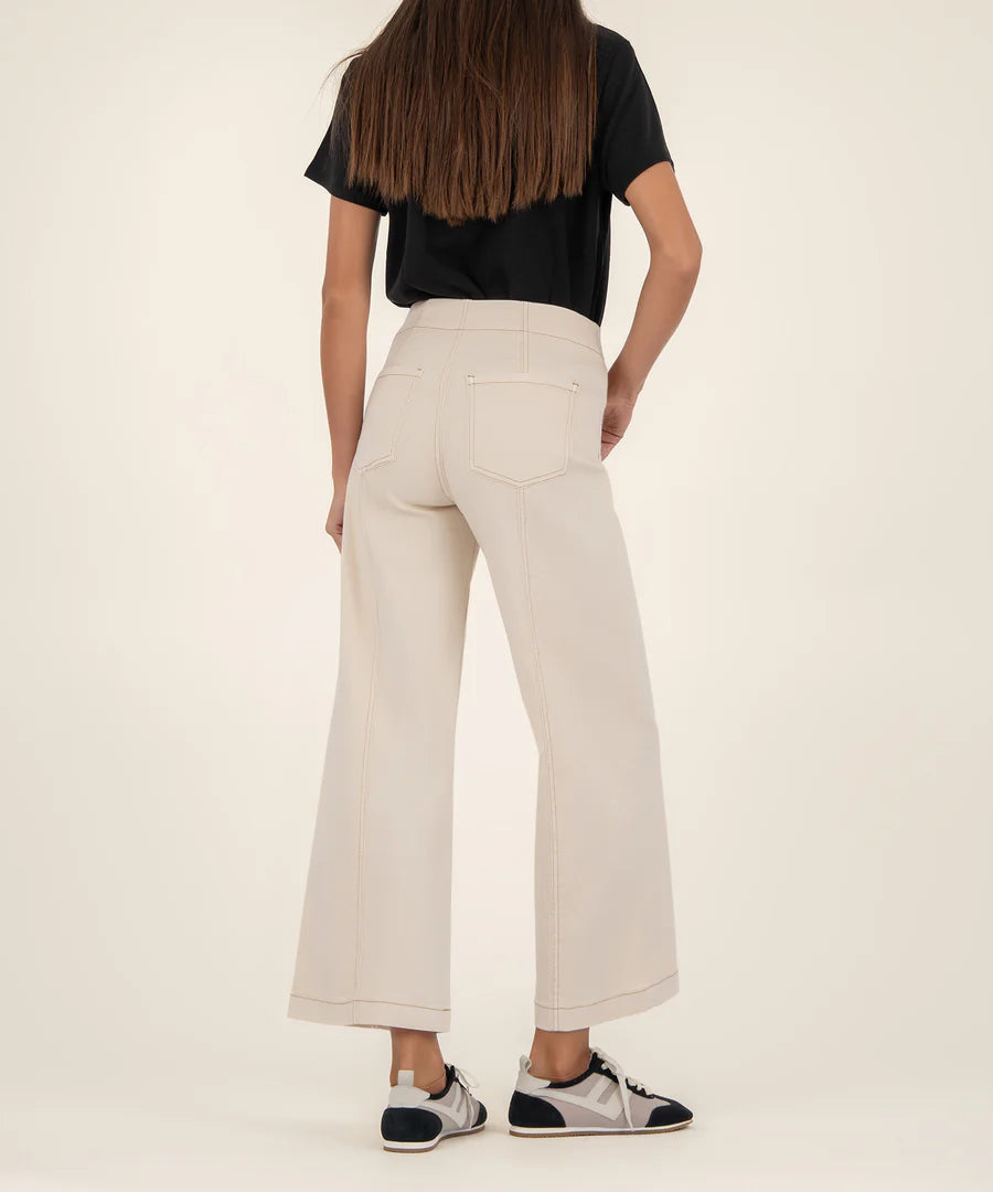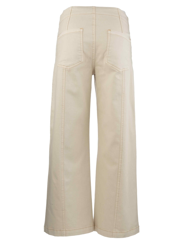 These high-rise wide-leg pants feature tailored welt pockets and a front vertical stitch that adds sharp definition to your silhouette. Effortlessly elevate your wardrobe with this contemporary classic.