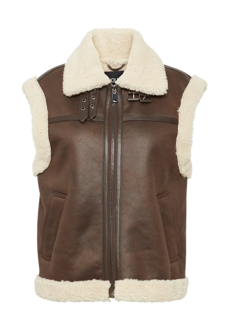 Add an edge to your layering with this sherpa pleather zip front vest. The soft sherpa lining brings warmth and contrast, while the sleek faux leather exterior gives it a modern, stylish finish. Perfect for elevating casual looks with a touch of texture and attitude.